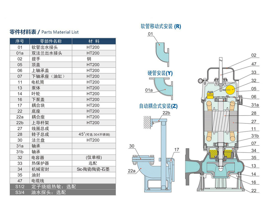 65QW25-15-2.2小型潛水排污泵特點(diǎn):