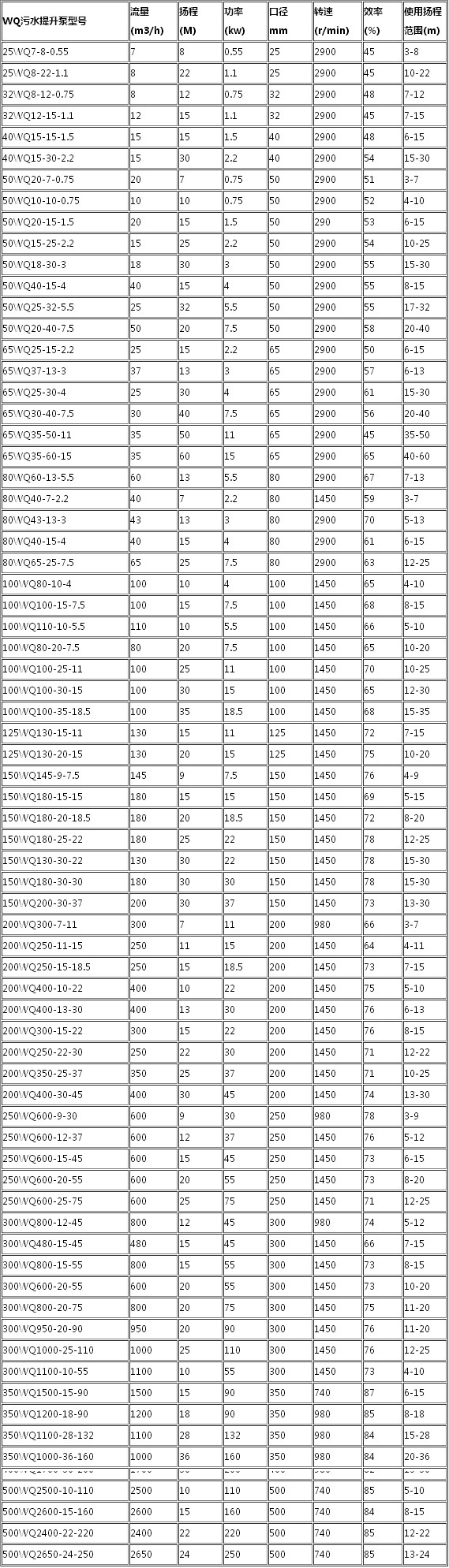 400WQ1760-7.5-55大型污水提升泵適用范圍: