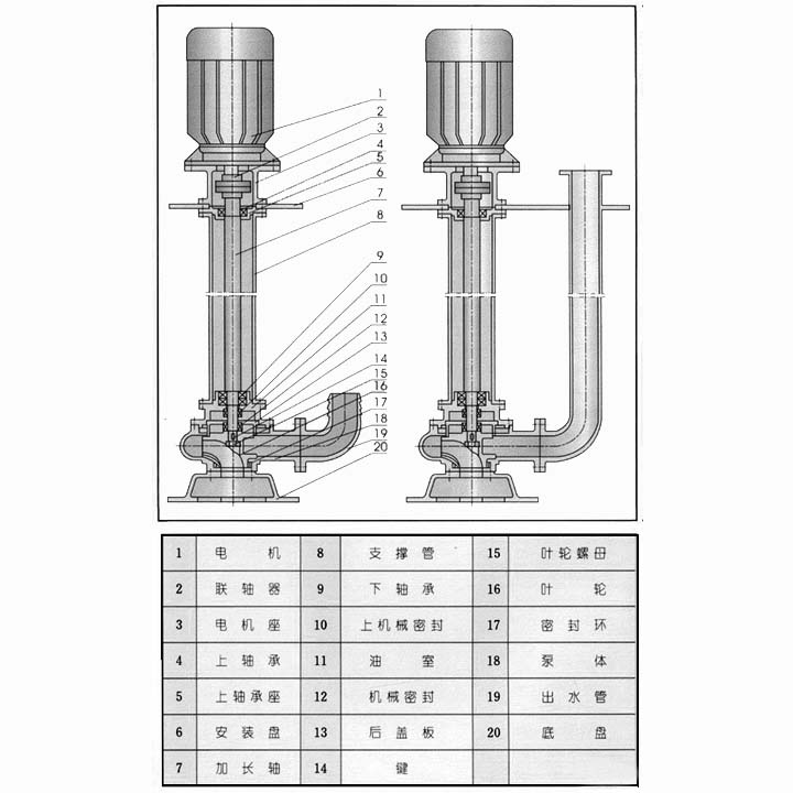 4、該泵的聯(lián)軸器結(jié)構(gòu)先進(jìn),尺寸精密,穩(wěn)定可靠。且具備兩種安裝方式,一種是單管安裝,另一種是雙管安裝,適用于不同的場(chǎng)合。